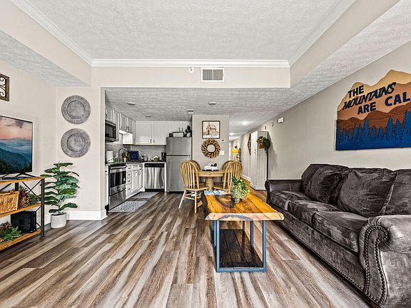 BEAUTIFUL REMODELED CONDO IN THE HEART OF PIGEON FORGE! A perfect investment property or vacation home located on Dollywood Lane. The unit comes fully furnished. A gas log fireplace compliments the living area, which also has easy access to a private balcony to enjoy the view of the mountains. The kitchen has stainless steel appliances, granite countertops, & comes fully stocked with everything needed to cooking. The primary bedroom has a king size bed & tile walk-in shower in the bath. New HVAC installed April 2021. The resort amenities includes an indoor pool, sauna, seasonal outdoor pool, hot tub & grilling area. You can self manage condo or use Golf View Mgmt.