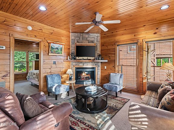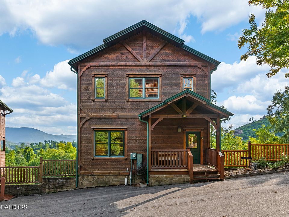 Spectacular Smoky Mountain Views your guests are looking for! Welcome to your guest's next favorite getaway. This log cabin features multiple spacious decks providing serene places for morning coffee or evening sunsets above the trees. The breath taking view will provide a unique experience to remember for years to come. Entertainment is built in - the lower level walk-out offers a full recreation zone complete with a pool table, air-hockey table and a multi-arcade system that will keep families engaged for hours. Relax in the bubbling hot tub on the deck, soak in the views, and let the stress melt away. Bedrooms offer comfort and privacy while the bunk-bed in the recreation spaces gives flexibility for larger groups or families. Your guests will enjoy amenities like the community pool - perfect for guests seeking more than just cabin entertainment. Investors will love the prime location, turnkey entertainment features, and mountain classic design presenting an ideal short-term rental or vacation home strategy. Call today to schedule your appointment for your million dollar view cabin today! Buyer/Buyers agent to verify all pertinent information.