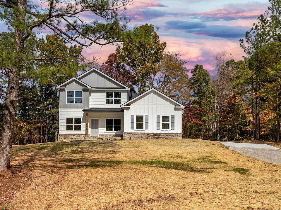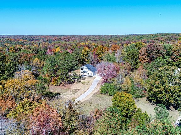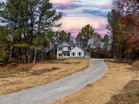 Nason Homes-MOVE IN READY!-New Construction Custom Farmhouse nestled on top of 5.2 picturesque acres. Open Concept Design featuring a chef's kitchen with double ovens & quartz countertops. Soft close painted cabinetry w/ Eat-At Kitchen Island opens to a living area featuring custom painted beams & ship-lap fireplace. Unwind at the end of the day under your covered back porch w/ a peaceful tree lined view. Modern design includes a home office w/ glass doors & a Primary Suite on the Main. The Primary Bathroom includes Quartz countertops & Contessa™ Porcelain Tile. Two-Story wrap around stairs welcomes you to an expansive Bonus Room & 3 additional bedrooms. Enjoy the serenity of the country & the convenience of a location that's only two turns off of I-40. Too many luxury finishes to list!