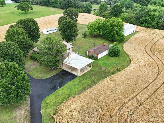 Enjoy the beautiful views this stately brick home has to offer. Enjoy the stocked pond as you enter or leave your home with the paved drive that goes on the sides of the pond. Home has a massive great room, living room, kitchen with dining area plus 3 bedrooms and 2 baths plus laundry room and office/hobby room. The grounds have aged oak trees plus fig bushes and grape vines. The old barn is still in good shape and has hay loft. There is also a detached building that has a separate electric meter that has kitchen cabinets plus a wood burning fireplace. Seller has no knowledge if the bath in the building is functionable. Home could use updating and price reflects items needed. sold "as is"!