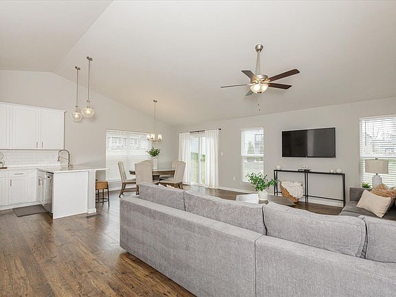 Nestled just minutes from Hwy 40 & 70, this three-bedroom, two-bathroom home features a beautifully designed living space. As you step inside you'll be greeted by the soaring vaulted ceiling and upgraded laminate flooring that flows seamlessly through the living room and kitchen. The heart of this home is undoubtedly the kitchen, equipped with top-of-the-line stainless steel appliances, 42” cabinets, quartz counter tops and tile back splash. Off the kitchen you will find the mud/laundry room that is perfect for the busy family. The master suite features a large walk in closet along with a spa-like bathroom with adult height vanities, soaking tub and stand up shower. Enjoy weekend BBQ's and family gatherings on the large backyard patio. Additionally all of the bedrooms feature beautiful ceiling fans and closets with upgraded custom shelving. The home also boasts a partially finished basement that is perfect for hobbies, entertainment, or additional storage. Additional Rooms: Mud Room