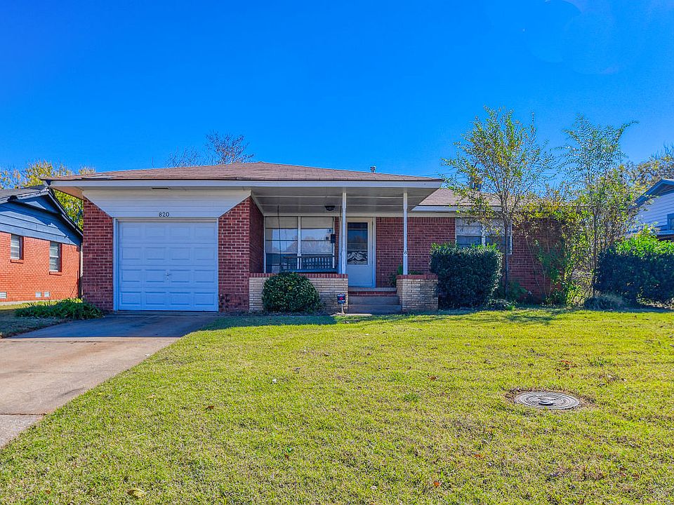 LOCATED CLOSE TO TINKER! This stunning home has GORGEOUS curb appeal! With lovely bricked flower beds on the LARGE FRONT PORCH! This stunning home has gorgeous updates! Wood floors throughout the home! Ceiling fans located in the living room and three bedrooms! Large windows to create TONS of stunning natural lighting! Open floor plan! The kitchen has tons of counter and cabinet space! A beautiful window over the sink looking out to the backyard! Plenty of storage throughout the home! The backyard has a large 11x16 foot shed! A large fenced in backyard! Tenant is responsible for all utilities. Pets must be approved. No Dangerous breeds. $500 non refundable pet deposit per pet. $25 monthly pet fee per pet. RENTAL REQUIREMENTS: MUST MAKE 3X THE RENT, NO OPEN BANKRUPTCIES, ANY EVICTIONS MUST BE PAID OFF. 1 Year