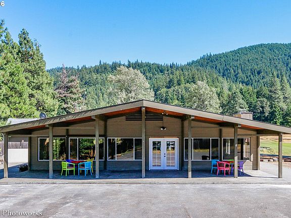 Building has open floor plan that lends itself to be a 3 or 4 bedroom house to suit your needs. Two bathrooms, commercial kitchen, gorgeous bar, stone fireplace, outdoor barbeque and patio, covered patios on front and rear, newer heat pump, roof, new floors and interior paint throughout, new French doors opening to patio and deck, putting green and hitting cage, outdoor walk-in cooler, plus a shop/storage building. Agent owner.