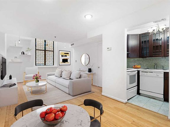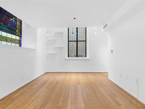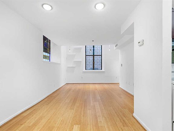 This 1 Bedroom 1 Bath unit features hardwood floors through out, a gorgeous original stained glass window and skylights bringing in loads of natural light. This spacious duplex offers a great living space and large bedroom that fits a king bed. The Abbey, once a historic church built in 1901 and now converted to condos is located on Hudson Street and near the Path. Conveniently located near shops and restaurants. Close to Elysian Park which offers a playground for kids, a dog run and basketball courts. Even better the condo includes parking on 4th and Hudson.
