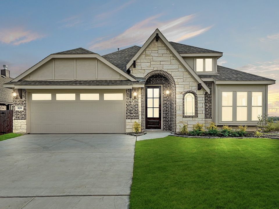 Bloomfield's Cypress II Ready to CLOSE! 4 bdrms, 3 baths, 2-car garage, Study, Game room, and is packed with upgrades that elevate the home! Laminate Wood floors from the entry to the back patio door in common areas gives you easy upkeep, great for your furry friends. Prefinished Stained Cabinets & Granite Countertops throughout. Study located off the entrance offers privacy for a home office and has French Doors & a charming window seat. Beautiful Kitchen equipped with SS appliances, a center island workspace, large walk-in pantry, and a window at the kitchen sink. Buffet at Breakfast Nook for extra counter space & storage, and the Family Room has a Stone-to-ceiling Fireplace added. Spacious Primary Suite and 2 bdrms on 1st floor; Bed 4 & Bath 3 upstairs off the Game Room. Great backyard space includes a Covered Patio and full fencing, with a metal fence where the yard backs to a greenbelt! Custom 8' front door, blinds, and gutters. Contact Bloomfield at Godley Ranch.
