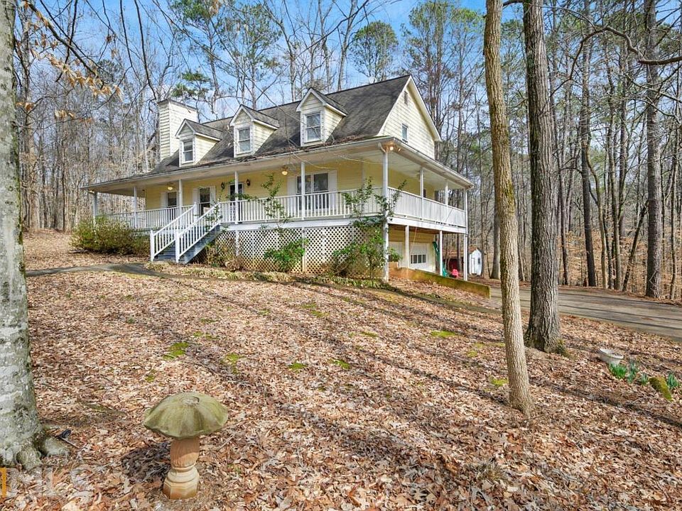 Private rural property with 2.47 wooded acres located off picturesque Johnson Brady road is the best of both worlds by still being close to Canton's shopping and restaurants for convenience! This classically charming home features a WRAP AROUND PORCH perfect for enjoying the scenery and wildlife. The interior of the home is move in ready but could benefit from updates to make it your own style. The bedrooms are all oversized with the MASTER ON MAIN and the secondary bedrooms upstairs for privacy. There are also two additional rooms upstairs for FLEX SPACE that can be used for offices, exercise rooms, crafting, etc and a shared bathroom. Downstairs is a MEDIA ROOM and two car garage with tandem area for additional equipment or toy parking. Storage abounds with numerous walk in attic areas from the upstairs bedrooms and plenty more in the basement. There is also a separate WORKSHOP on the property with electricity for all your tools and projects. Low maintenance natural grounds with no HOA for your own peaceful oasis.