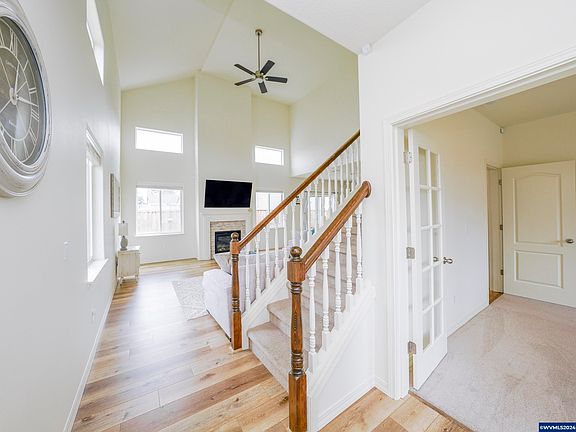 An absolutely stunning, very well kept, newer built home. Large vaulted living room and gas fireplace, kitchen island with quartz countertops, stainless steel appliances, and a large walk-in pantry. Spacious primary bedroom with vaulted ceiling and plentiful room in walk-in closet. Fenced backyard with a 12x14ft gazebo with full irrigation. Hybrid water heater, solar powered panels offering big electric cost savings. Glass french doors to office that can be used as a bonus room or converted to 4th bedroom.