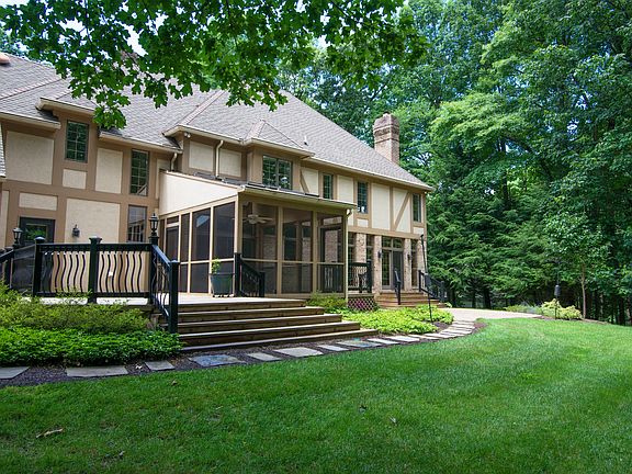Follow this private panhandle off dead end street to this Benhoff Custom Built 5 Bedroom, 3/3Bath Traditional Home with gleaming wood floors and large windows that invite the outdoors in! Two story foyer with grand staircase, Den/Library with built-ins, two-sided fireplace between dining room & living room, additional fireplace in spacious family room filled with windows and glass doors that open to brick patio. Screened in porch and deck also off kitchen, large 2+ acre private, wooded lot backing up to stream and Laurelford Court. Brand new roof (2016). Well Yield 6.5+