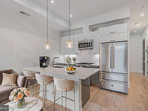 Introducing an exquisite 3-bedroom, 3-bath condo that epitomizes modern elegance and sophisticated living. This stunning residence features luxurious 5-inch blond hardwood flooring that flows seamlessly throughout the open-concept layout, creating a warm and inviting atmosphere. The gourmet kitchen is a chef's dream, outfitted with premium Bertazzoni Italian appliances that blend functionality with high-end design. Every detail has been meticulously curated, from the professionally installed stylish wallpaper that adds a touch of artistry to the living spaces, to the Hunter Douglas silhouette blinds that provide both privacy and light control, enhancing the condo's contemporary aesthetic. The Craft Made soft-close cabinets offer ample storage while maintaining a sleek and polished look. Nestled in an up-and-coming area, this condo is perfectly positioned for those who appreciate urban convenience. Enjoy the vibrant local scene with an array of restaurants and a charming coffee shop just moments away. With easy access to the 395 beltway and a short drive to downtown DC, this location combines the best of suburban tranquility with city accessibility. This exceptional property is not just a home; it’s a lifestyle. Experience the perfect blend of luxury, comfort, and convenience in this remarkable condo.