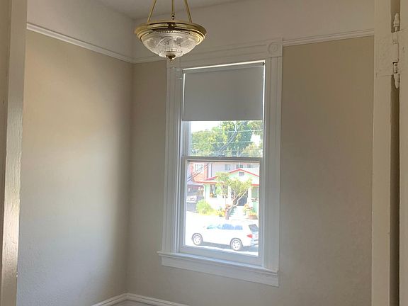 The unit is the upper flat in a Victorian triplex. Period architectural detail, recently updated bathroom. The kitchen has a gas stove and dishwasher. There is uncovered off street parking and a coin laundry. Owner pays garbage. No pets.