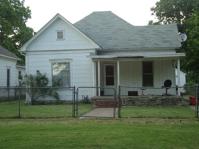 Walking distance to Middle & High School, large living room and eat in kitchen, larger utility room, 2 bedrooms, 2 bathrooms. Detached garage, chain link fenced except for back side. This is a good starter project, will need repairs. Property sold AS IS with no warranties or guarantees expressed or implied, buyer must have proof of financing or funds to close when making an offer.