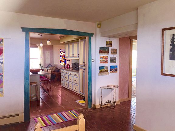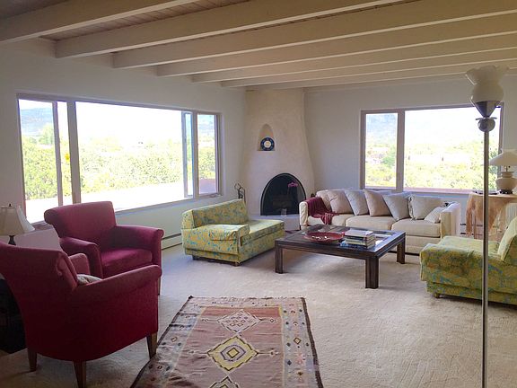 High on a hilltop this unique property affords a 360 degree view of surrounding mountains, just ONE mile north of the Plaza! In one of the most sought after neighborhoods of Santa Fe, lush verdant landscape of rolling hills, this large, sun-filled home welcomes you to the serenity and beauty so close to town with over 4,100 sq. ft, 3 bedrooms, 3 baths, 3 fireplaces with many renovated features-a foam roof still under warranty, a redwood viewing deck, updated kitchen, city lights and so much more-A magnificent artists studio with its own entrance, bath and patio awaits your agenda, whether it is a separate apartment, additional bedroom, rec room or home business on the lower level.