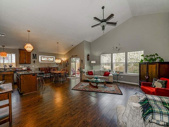 Accepted Offer with Contingencies. Gorgeous newer one level home with regal appointments: Open, airy floorplan with wide hallways, hardwood floors, soaring vaulted ceilings, granite kitchen with island. Home backs to picturesque wooded park area, which brings many wild birds to your feeders, plus across the street from grassy neighborhood park area. Fully fenced backyard, underground sprinklers in front. Property comes with additional parcel of land to the west.