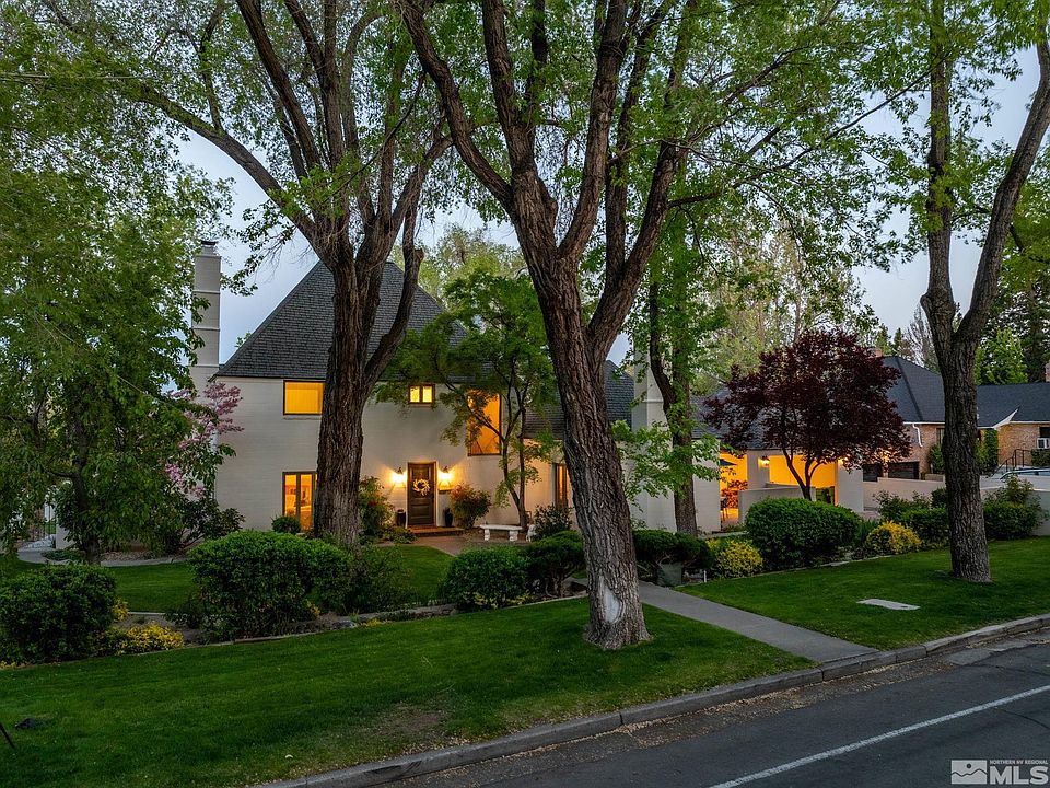 Rarely does a home of this significance come to market. Located in Reno's iconic Newlands Manor neighborhood, this distinguished French Renaissance Revival residence offers timeless architecture, one of the largest lots in the area, and a deep sense of character that only decades of thoughtful stewardship can provide., Designed by renowned Nevada architect, this home sits proudly along tree-lined Marsh Avenue and retains many original details, including hardwood flooring, pocket doors, and two fireplaces. The spacious main level features a formal living room, elegant dining room, parlor (counted as a bedroom), and a cozy family room, all thoughtfully connected for everyday living and entertaining. The updated kitchen is outfitted with a Thermador 6-burner cooktop, dual ovens, built-in KitchenAid refrigerator, a bar sink, granite counters, and a breakfast nook overlooking the patio. A butler's pantry enhances entertaining potential. There is a junior main-level primary bedroom with an en-suite. French doors from multiple rooms lead to an intimate stone patio and a private, park-like backyard, complete with a heated saltwater pool (that includes an electric cover for ease of maintenance and added safety), hot tub, lush floral landscaping, and mature trees offering privacy and shade. The current owners made significant enhancements to the upstairs including sand and finish herringbone hardwood flooring, and new iron-clad Pella windows upstairs. In the primary suite, they've created soaring vaulted ceilings reaching 17 feet, shiplap walls and a built-in armoire. The adjacent "green bathroom" has been fully remodeled with new tile, flooring, a walnut furniture vanity, and updated lighting. Additional upgrades throughout the home include new visual Comfort lighting fixtures, Emtek hardware, new doors, custom closet systems, a new air conditioner and furnace for the upstairs zone, new radon mitigation system, as well as fresh interior and full exterior paint. The home also has a built-on porte-cochère, and detached three-car garage with attic storage. Located within walking distance of Midtown and zoned for Jessie Beck, Swope, and Reno High, this is a truly special property in one of Reno's most historic and sought-after neighborhoods. No HOA.