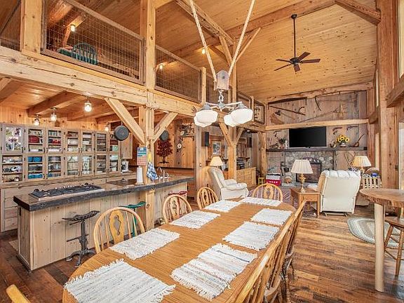 NORTHWOODS LIVING COUNTRY STYLE Barn inspired 4700 sq. ft. 3 bedroom, 3.5 bath home nestled on 1.63 wooded acres w/ 181' of sand swimming frontage on highly sought after Meta Lake just outside Eagle River. Completed in 2015, this Timber Frame home is quality throughout. Enter the home through the silo influenced foyer and into open concept great room with 2 story ceiling, gas fireplace and waterfront views through large lakeside windows. Gourmet kitchen with plenty of cabinet space, SS appliances, center island and breakfront. First floor also includes reclaimed Douglas Fir flooring, master bedroom suite, laundry and office/mudroom. Second floor features open loft area for additional living space, full bath and bonus room. Lower level walkout features spacious family room, 2 large bedrooms and full bath. Attached heated 3 car garage and detached 30x30 second garage provides plenty of storage. Schedule your viewing today! See attachment for additional amenities.
