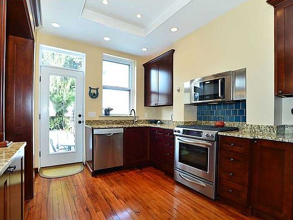 Walk into this charming, move in condition Victorian with many new renovations. Spacious with high ceilings and the kitchen has been opened to the dining room with original built-ins. Center island bar is surrounded by custom wood cabinets, new stainless appliances and granite counter tops. Glass panel door leads to private level yard. Pleasant and bright bedrooms on the upper 2 floors with up dated bathrooms. Great front porch with new decking and railings, Hardwood floors, Walk to the Biddle's Coffee Sp