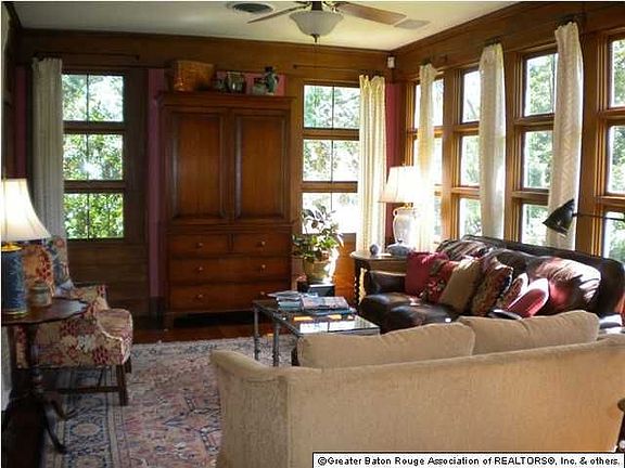 You'll be amazed at what's behind the front door. Beautifully tucked into the trees, you'll enjoy a beautiful "green" view from every room. The FLOORS are WOOD and SCORED CONCRETE, the ceilings are 9ft and higher in the Great Room. GOURMET KITCHEN is CUSTOM DESIGNED for entertaining with SLAB GRANITE counters and BREAKFAST area overlooks mature LANDSCAPED COURTYARD and DECK. CYPRESS kitchen with amazing APPLIANCES (side by side Kitchenaid refrigerator, Jennair cooktop, 2 wall ovens, wetbar and more!) was added 30 years ago, as well as a great room, laundry room and back entrance. LIVING ROOM off FOYER boasts MASONRY FIREPLACE with SLATE ENCLOSURE, and extended SUNROOM with walls of WOOD WINDOWS make every view special. SEPARATE MASTER SUITE has tree top views and room for large furniture. Master suite located upstairs has a large walk-in closet & its own bathroom for added privacy. GARAGE was added 12 years ago and EXTRA WIDE for 2 Large Vehicles. Studio/Work out area above garage. OLD BEAMS & DOORS have been used in renovations to this home to maintain it's style and charm.