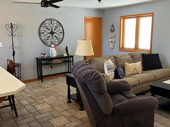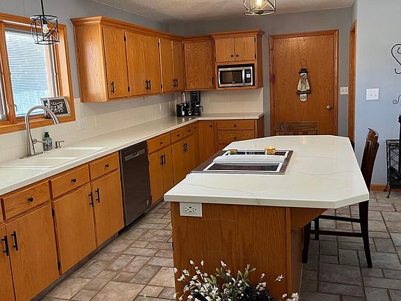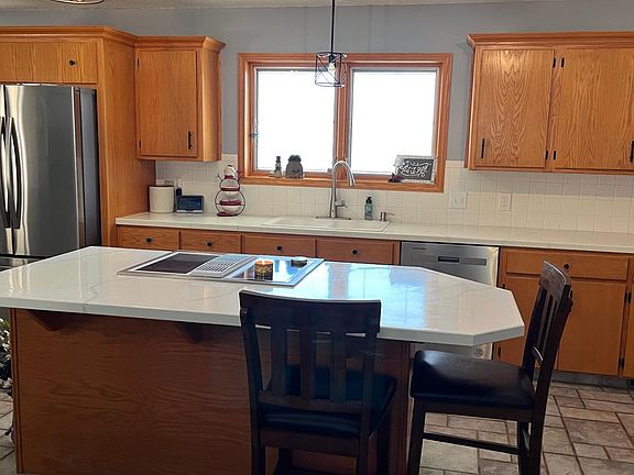 Attractive 3 Bedroom, 2 Bath Brick home with open floorplan. Very open and airy kitchen with plenty of cabinets and all appliances included. The special Kitchen feature is the large island that is both a functional work area and also provides extra seating, which makes it ideal for entertaining guests. The open dining and living room area can be arranged to suit any desired plan or needs. Pella windows with built-in blinds let in ample sunshine. The primary Bedroom has its own private shower bathroom and a walk-in closet. The utility/laundry room has a built-in work table beneath the wood cabinets. The unfinished basement is a full 1772 sq ft that does have the basement bathroom plumbing with a fiberglass shower already in place and Egress windows. How about the extra large back yard with a fully enclosed wood privacy fence and shed? Rainbird inground sprinklers in front and back yard. Attached 2 car garage. Sellers have required a closing/possession date of June 27, 2025.