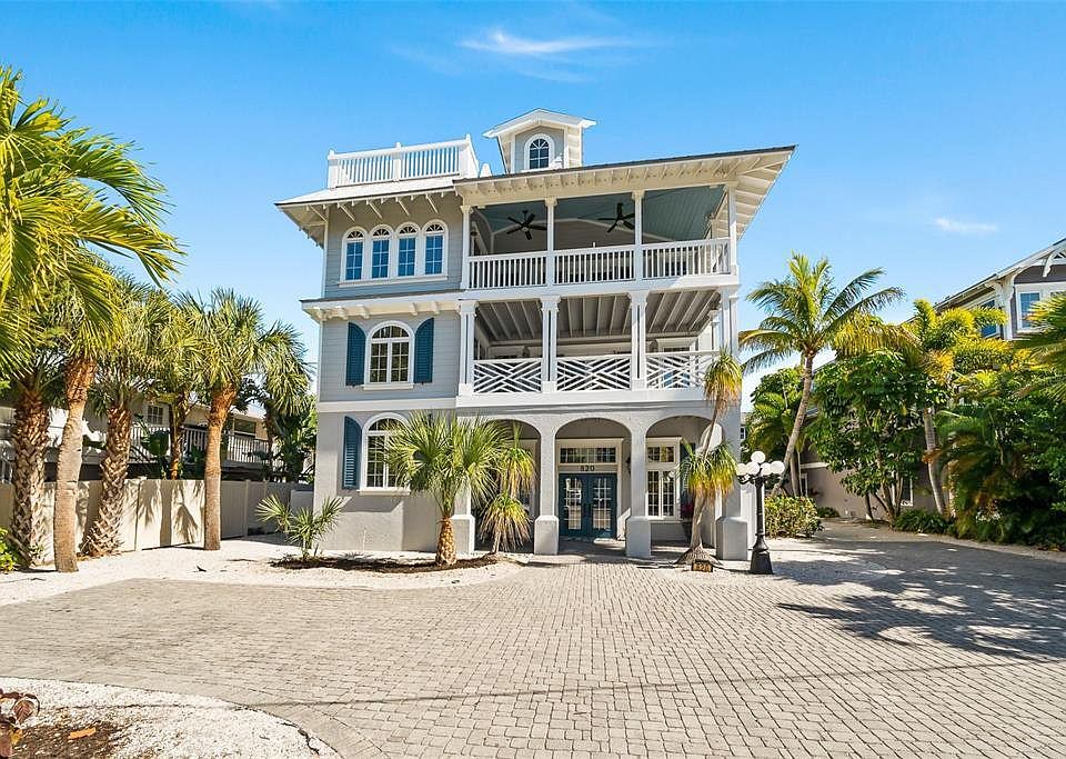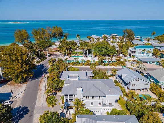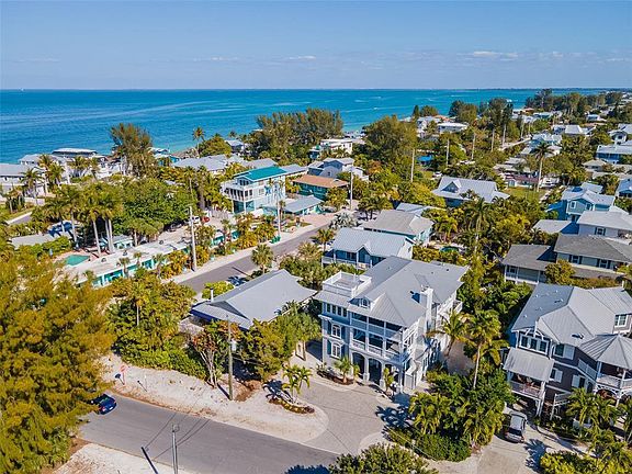 ANNA MARIA ISLAND'S BEAN POINT + FABULOUS HOME + ROOF TOP DECK = Memories of a LIFETIME....Only a few homes can truly say they are steps to BEAN POINT where from morning to night you can watch the sea life cruising the Anna Maria Island coastline or walk for miles on our beautiful beaches. Are you a sunset or sunrise person?...Does not matter in this expansive Anna Maria Island home. At almost 4000 square feet of living space, four outside decks and an oversized roof top deck that has 360 degree views of the Anna Maria Island's precious North End and the waters beyond. Each floor has a very large west facing deck with views of the water all the island activities and a north facing deck to enjoy the salty air and views of Tampa Bay. Step inside to a house that feels like a home including four large bedrooms, all with walk in closets and ensuite baths. Your private elevator allows you to send up your luggage or groceries and head to the beach. The second floor has 3 bedrooms and baths, it's own laundry room and it's own living room with mini-bar. The top floor, with it's high beamed ceilings, open expansive living room, dining area, open to the kitchen with high end appliances. Perfect for on island entertaining and enjoying the views of the Gulf and Tampa Bay at the same time. Also on the top floor is the large Master Bedroom with beautiful ensuite bath and a fantastic walk in closet not to mention views of Tampa Bay from your bedroom window or sit out on the north deck with your morning coffee to see the sunrise. A double desk office is perfect for today's world of working from home or at home learning. The ground floor garage is massive and just waiting to be turned into the entertainment area blending into the fenced yard for even more fun times on the island. Come see this once in a generation home on Anna Maria Island's North Shore. A home where many good times were had by all, well loved by it's family. It is now ready for a new beginning of island experiences.