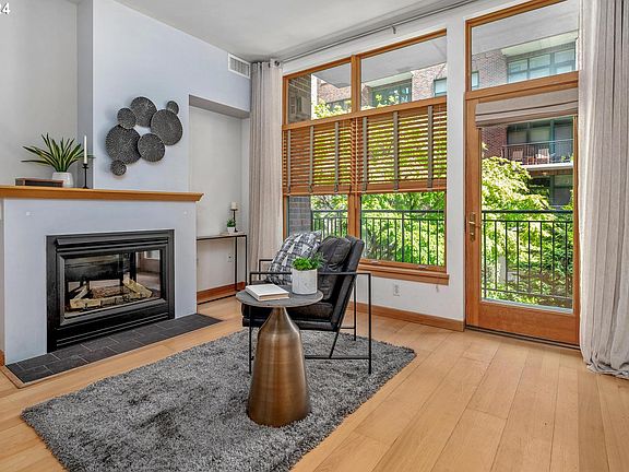This bright, east-facing condo exudes a warmth and charm that's hard to match. Its well-designed floor plan offers a spacious bedroom and a separate area for entertainment, den, or home office. Featuring wood floors and windows, high-end appliances, and a cozy gas fireplace, this Riverstone condo has all you need to live your best life. Enjoy tranquil courtyard views from the tall windows or unwind on your balcony with a good book and a cup of coffee. Conveniently located just one block from the streetcar, Jamison Park, and a short stroll to restaurants, gyms, cafes, and grocery stores. Pearl favorites Piazza Italia and Greenleaf Juice are located on the ground floor! Deeded parking and two storage units included.