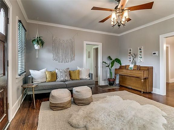 BEAUTIFULLY UPDATED CRAFTSMAN, with a dream backyard, all within a short distance to parks, the Paseo & Uptown 23rd is ready for you to call home! This freshly painted home features refinished original hardwood floors, clawfoot bathtub, plenty of storage and beautiful living spaces flooded with natural light. The living room flows into the dining room & meal prep is easy in a spacious renovated kitchen with a farmhouse sink. With three full bedrooms, two baths and a bonus room that can function as a study, there is room to expand. Renovations include hail resistant roof, Energy Star windows, tankless water heater, HVAC ductwork, & attic insulation. The backyard retreat invites you to enjoy long summer evenings on the custom cedar deck, with raised vegetable beds & a bonus hidden deck. The unfinished studio opens to the backyard and is ready to be transformed into an additional living space. This charming home is a light filled refuge. List of updates, Virtual tour & Video available.