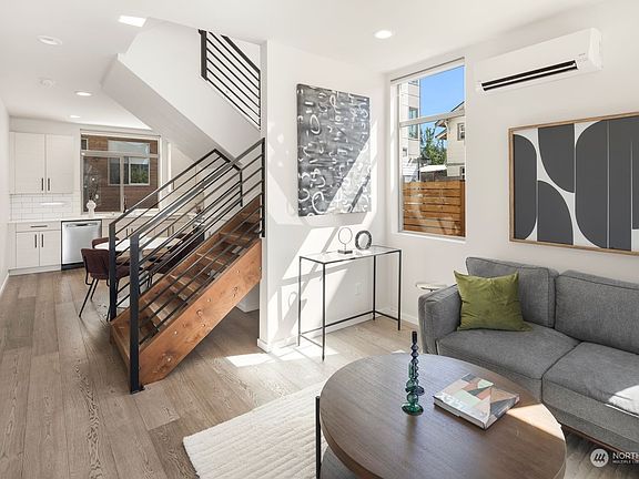 Better than new construction on a quiet street in Ballard! Just 1/2 a block from Gilman Park, breweries, and all that Market Street has to offer. This south facing home is flooded with natural light, opening to your living space and kitchen featuring a floating staircase, sleek modern kitchen, and 5-burner gas range. The second floor features 2 bedrooms and a full bathroom. The third level is your primary suite with a large custom walk in closet, smart washer/dryer, and spacious bathroom w/ dual sinks & large rain shower. 2 separate rooftops with Rainier & city views. Upgrades include: smart home technology throughout, wireless motorized roller shades, custom closets, and security system including window/door sensors and motion sensors.