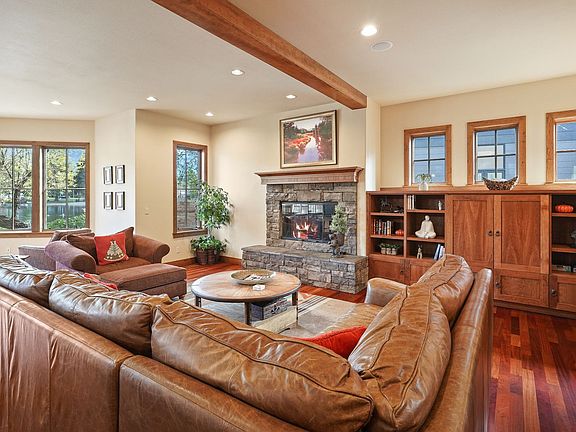 This elegant Tudor home is located on the banks of the Deschutes River near historic Drake Park in Downtown Bend. It is an easy walk to downtown, where you'll find lots of choices for dining, shopping, and entertainment. Drake Park Villa is a beautiful two-story home with three bedrooms and two and a half baths. The luxurious king master suite includes a large separate shower, double sinks, and a soaking tub surrounded by beautiful paned windows that overlook the river. Two queen bedrooms share one bath on the second floor, which also has a spacious family room with a flat-screen television with cable and DVD. The family room can become a fourth bedroom with the fold-out sofa. The main floor features Brazilian hardwood floors and a roomy, open floor plan with living, kitchen, and dining areas. Large windows frame the beautiful view of the river. Drake Park Villa also features a gas fireplace, gourmet kitchen with stainless appliances, granite countertops, and seating for four at the bar, as well as a media room with flat-screen TV and game table. This is a no-pet home. If you choose to book this home, you will receive a separate rental agreement that will need to be electronically signed before your stay.