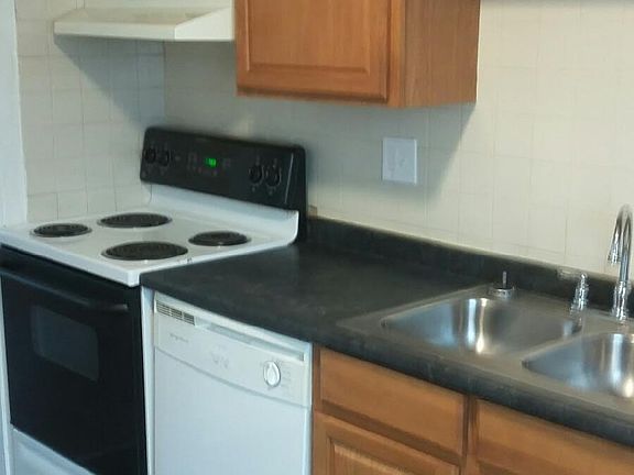 Two bedroom apartment, end unit, private porch, new carpeting, newer laminate wood floor, new thermal windows, newer bathroom, newer kitchen, refrigerator, stove and dishwasher. There are washer and dryer hookups inside the unit. We require a $30 application fee.