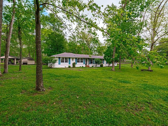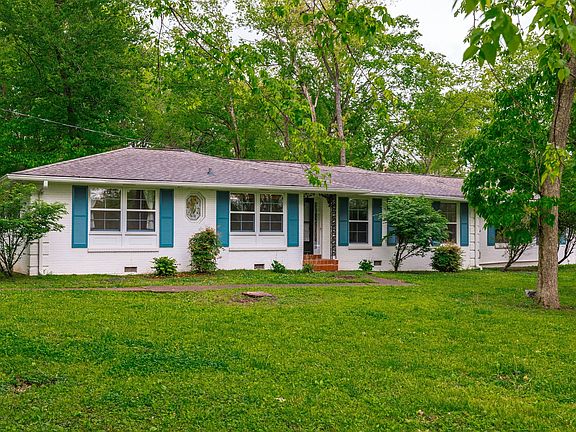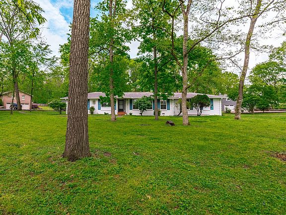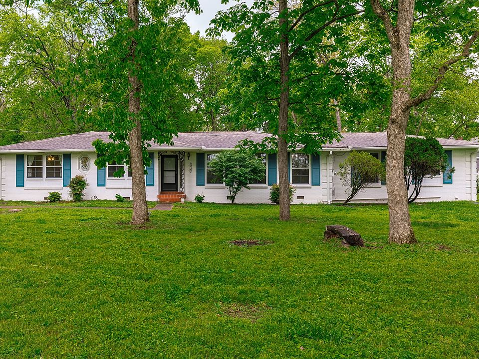Nestled on a wooded corner lot just under an acre, this all-brick, one-level ranch-style home offers a unique blend of charm, flexibility, and convenience. Surrounded by mature trees on and around the property, the natural setting provides privacy and a peaceful retreat just north of Nashville—with an easy commute into the city. The circle drive offers two entrances from different sides of the street, making coming and going a breeze for guests and residents alike. Step into the backyard and imagine the possibilities. The large patio is framed by flower beds, ready to be transformed into a vibrant garden oasis with your favorite blooms. There's ample space to add an outdoor entertaining area, a firepit, or even a fenced section for pets—tailor the space to fit your lifestyle. Inside, you’ll find an eclectic mix of old and new, making the home a perfect canvas for a variety of design styles and layouts. The original hardwood floors greet you at the entry, which opens to a flexible space on the right—a large room with endless possibilities. Use it as a formal living room, dining area, or creative flex space. Near the back of this room, adjacent to the kitchen, is a cozy spot that would make a charming dining area. To the left of the entry is another versatile room currently set up as a living area but ideal for an office, library, or reading nook. Continue into the heart of the home—a welcoming living room with a fireplace and built-in bookshelves, open to the kitchen and breakfast area. A built-in bench in the breakfast nook adds character and functionality, while the kitchen features fun two-tone cabinets and decorative flooring. A window over the sink offers a perfect view of the backyard. Off the kitchen is a second flex space with backyard access, ideal for a media room, playroom, office, or gym. Just beyond that is a spacious utility room with extra storage, plus a small garage-type space for tools and lawn equipment. This property offers so much versatility!