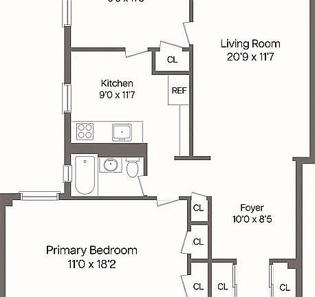Step into the open living space through a welcoming foyer with two roomy closets—perfect for a formal dining area or a convenient home office. Natural light pours into the oversized living room through two large windows, creating a bright and airy atmosphere.