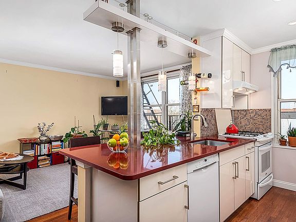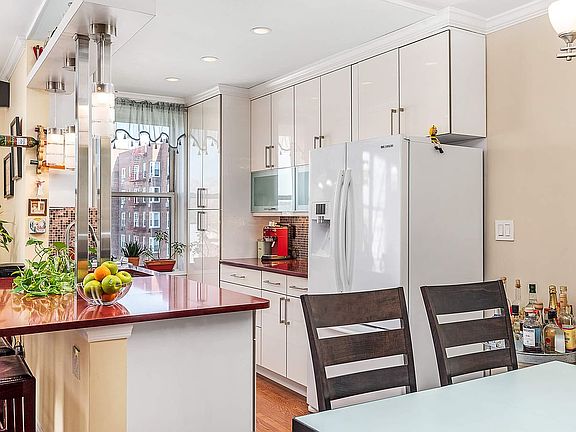Large superbly renovated 5th floor one bedroom This spacious apartment in a post-war doorman building is thoroughly renovated. Enter by an oversized foyer that features a double closet. The north-facing living room has a double window that allows a constant flow of natural light. The Windowed renovated kitchen has a pass-through to the living room. Well, thought-out cabinetry maximizes its space with pull-out shelves. The extraordinary amount of quartz counter space. Bar counter setting for 3 or 4. Top-of-the-range appliances include a super quiet bosch dishwasher and a double-doored Samsung fridge with a filtered water dispenser. Overall any chef would feel comfortable cooking in this kitchen; with the ample dining area, You'll love to entertain. The stylish tiled bathroom has a large walk-in shower with modern glass doors & two showerheads. The sizeable king-sized bedroom has two closets, a linen closet totals 5. There are hardwood floors in the apartment & recently painted walls & ceiling. Crown moldings and spotlight lighting. In the Wall ACs behind custom cabinetry. A move-in-ready apartment if there ever was one. All utilities are included in the low maintenance, except electricity. This prime Midwood elevator building features 24H Doorman, a package room, two laundries, a courtyard, and a live-in super. Bike storage, Parking is wait-listed at $160 per month. Located next to the Ocean Parkway, America's oldest & never-ending bicycle path, and in the Kensington/Ditmas Park vicinity, shopping, and restaurants are just a few blocks away. 18th Avenue and Avenue I of the F train. Subletting is allowed after two years. Sorry: no dogs! Selling Brokers' contact is at the bottom of the page.