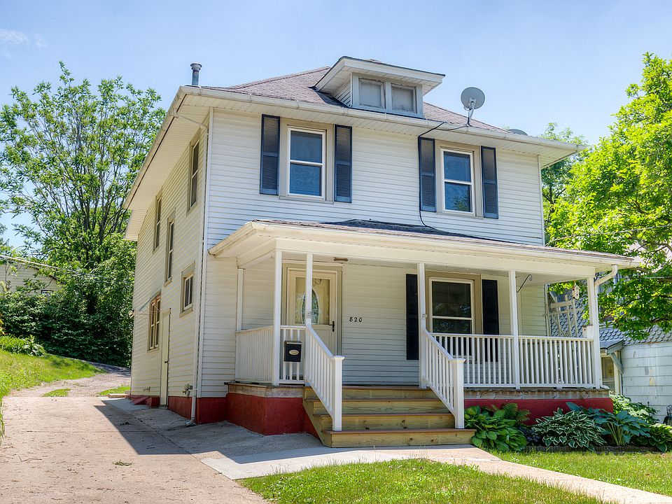 Sharp two story that greets you with that covered front porch you've always wanted. Beautiful turn of the century woodwork throughout with large living room that opens to spacious formal dining. Kitchen has newer cabinets, butlers pantry for extra storage and a mud room off the back door with enough room to add some built-ins. All three bedrooms up on the second level with full updated bathroom. One of the bedrooms has a bonus room off the back that would make an awesome walk-in closet. Alley access from the rear and enough room to build a garage if needed. Heavy-duty metal siding, vinyl windows, high-efficiency furnace, newer plumbing and fixtures, all close to beautiful Gray's Lake and downtown.