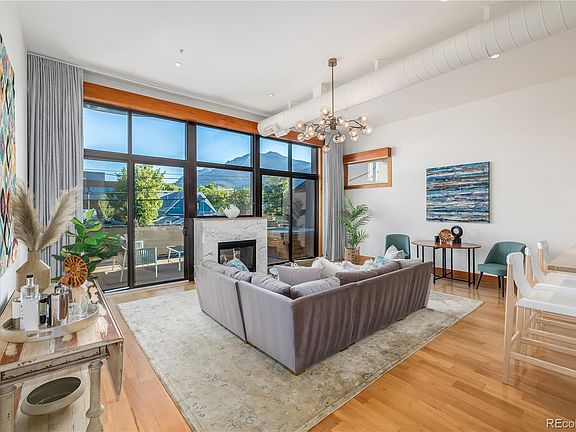 Nestled in the vibrant west end of Pearl Street, yet still very private, this modern loft-style condo offers the best of urban living with views of nature and mountains. Enjoy easy walkability to an array of neighborhood restaurants, shops, and boutiques, immersing yourself in Boulder's lively culture. Built in 2007, this dream home is spread across three levels and includes 2 bedrooms and 2 1/2 baths. The open floor plan boasts 12' high ceilings, accentuated by wide plank maple hardwood flooring throughout. The living room seamlessly connects to an outdoor balcony with a double-sided fireplace and breathtaking mountain views, the perfect ambiance for relaxation and entertainment. The gourmet kitchen features GE Monogram appliances, Fisher & Paykel double drawer dishwasher, DeWills soft-close maple cabinetry, and elegant neutral granite countertops. The upper level houses a spacious primary suite with expansive windows offering southwest Flatirons mountain views and a private balcony, a double-sided fireplace shared with the luxurious primary bath, (a jacuzzi jetted tub) and a 2-head steam shower. Second floor skylights add a touch of natural light. The spacious secondary bedroom features an ensuite bath for added privacy and comfort. Completing the package is a main level, private, attached, and oversized 2-car garage. This condo can be bought fully furnished, making it an ideal choice for corporate or executive rentals or as a second home. Whether you're seeking a stylish urban retreat or a high quality investment opportunity, this loft-style condo checks all the boxes.