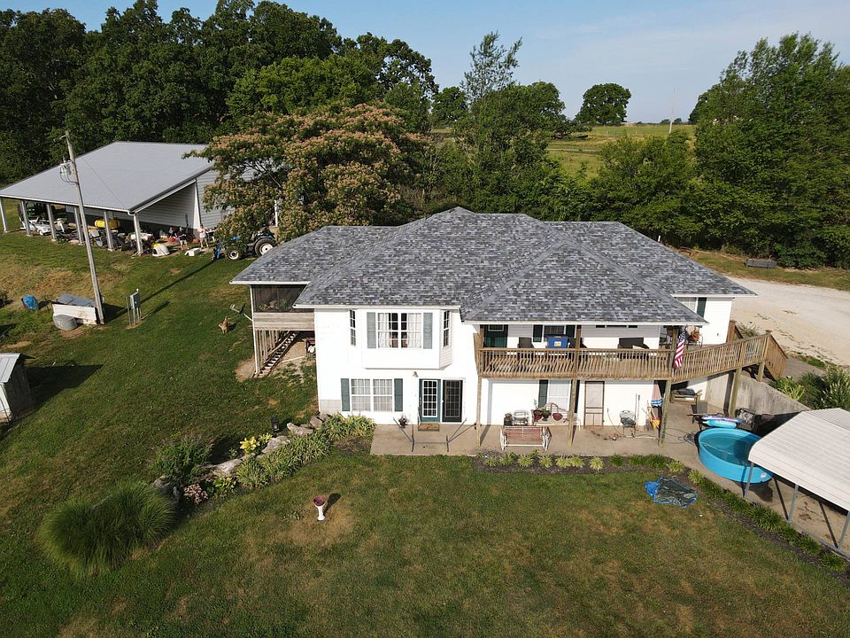 Christian County Mini-Farm with 7 acres just South of Ozark approximately 5 miles. This custom-built 5 bedroom (1 non-conforming), 3 full bath home was built in 2003 and features approximately 3600 sq. ft. of living space with over 4500 total square footage so LOTS of storage area. Features a 60X60 barn/shop with a lean-to, Screened in back porch, John Deere room, 2 car attached garage, mud/laundry room, custom built Oak kitchen cabinets with Corian counter tops, hardwood floors upstairs and downstairs with another kitchen and living quarters downstairs. Great place to entertain or bring your mother-in-law! House sits well off of Persimmon Road so lots of privacy and property is fenced and would make an ideal place for horses or raise your own beef. Ozark School system and convenient to Hwy 65 for a fast commute.