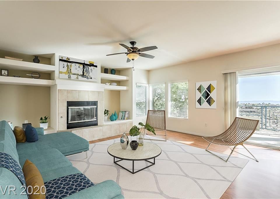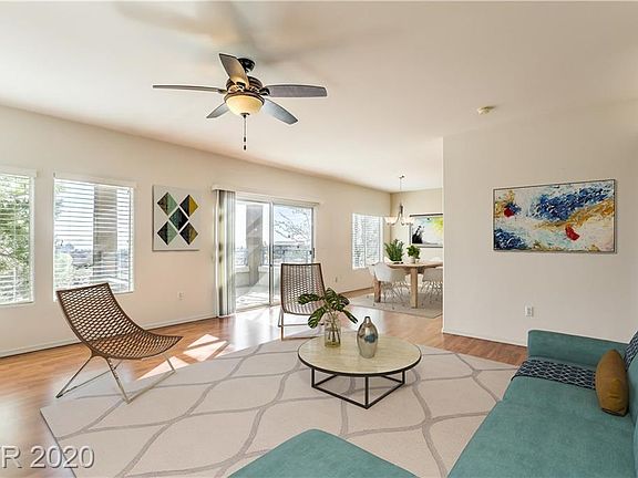 FABULOUS UNOBSTRUCTED VIEWS OF THE STRIP & CANYON IN THIS 2 BED + DEN & 2 BATHS CORNER UNIT. WELL MAINTAINED & RECENT FULL KITCHEN RENOVATION. OPEN GREAT ROOM & DEN WITH FRENCH DOORS. BEDROOMS AT OPPOSITE SIDES OF THE HOME. OVERSIZED COVERED BALCONY MAKES FOR EXCELLENT INDOOR/OUTDOOR LIVING. LAMINATE FLOORING, TILE IN KITCHEN & LAUNDRY, CARPET IN BEDSROOMS. COMMUNITY FEATURES POOL, FITNESS, LOTS OF GRASS, & A HOP FROM DOWNTOWN SUMMERLIN