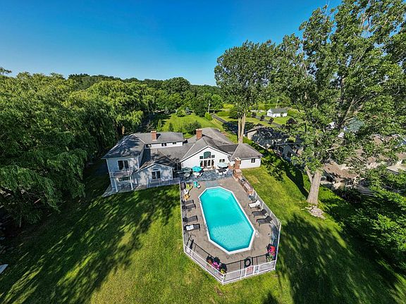 Look No Further for Your Lakefront Dream Home! Beautiful Lake & Mountain Views. Traditional style 4,400+ sq ft, 4 bedroom, 4 bath home on 1.9 acres. Large 4-car attached garage (24' x 42').175 ft of lakefront on beautiful Lake Champlain. Easy access for boating & numerous water activities. Cathedral ceilings & solid Black Locust Wood flooring and Travertine Marble flooring. Open floor plan has lovely marble fireplace situated in the center of the living room & kitchen areas. Kitchen has quartz counter tops, stainless steel appliances, walk-in pantry, & breakfast nook. Formal dining room has Rumford Brick Fireplace. Primary suite has cathedral ceiling, two spacious closets, & bathroom with marble tiled walk-in shower & jetted tub. Upper level has family/game room with Franklin Oil Free-Standing Stove & wet bar entertaining area. In-ground pool surrounded by spacious stone patio area has brick fireplace with pizza oven, gas grill, refrigerator, & other amenities for outdoor gatherings.