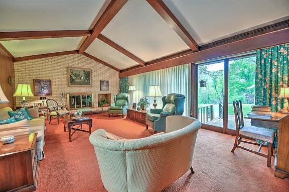This mid-century architecturally designed modern home lies in a beautiful setting at the foot of Bays Mountain. The spacious light filled living and dining rooms with lovely window walls have views to tree shaded lawns. Beamed ceiling, a fireplace, and French doors complement the living room, which opens to a lovely patio for outdoor entertaining, The kitchen features loads of pale wood cabinetry complete with an adjacent full dining space, which opens up onto a charming deck. The main level features 2 bedrooms,including the master along with 1 1/2 baths and an office, which could serve as a third bedroom. There are two bedrooms and a full bath downstairs along with a spacious recreation/bonus room. Also handy is the unfinished area which includes the laundry and workroom suitable for crafts and hobbies. There is also hardwood underneath the carpet in both the current office and third bedroom on the first floor in addition to hardwood in the master bedroom. The double carport has ample storage and is designed to be very private. This custom home lies in a wonderful neighborhood on a quiet cul-de-sac, with a yard perfect for children!! You have access to the highly rated Washington Elementary School and the community recreation area which includes a soccer field,basketball court,playground,and walking path. Membership is available in theDonald Ross designed 18 hole Ridgefields golf course. The Greenbelt and downtown are just minutes away. COME SEE THIS HOME!