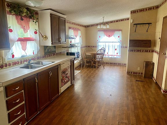 Open floor plan with large kitchen, home sits on a rock foundation on 0.95 acres with 2 separate fenced in areas. 24x30 workshop with concrete floors, Home needs some TLC.