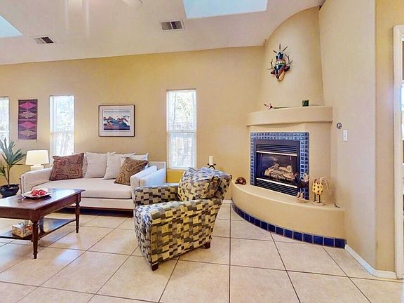 Fabulous 23yo Downtown residence, adjacent to the Fourth Ward historic district. The layout makes this place special: the open floorplan is filled with tons of light from the several large skylight/dormer windows atop the vaulted ceilings. See the 3D Virtual Tour. This cozy home definitely favors the owners--the very generous-sized primary bedroom, with personal backyard access, also includes a large walk-in-closet & dual bathroom vanities, & is separated nicely from the 2nd bedroom for maximum privacy. Plus: nichos, gas Kiva fireplace, finished two-car garage, attic storage, great daylighting from the prime closet glass blocks & the lush back courtyard with raised garden area for your planting whims. Great location, close to restaurants, museums & many parks--come see!