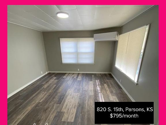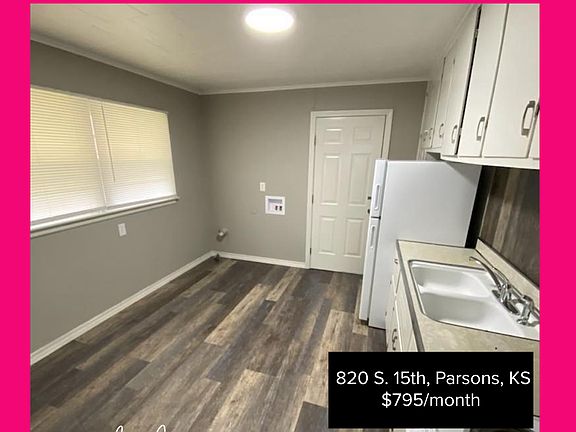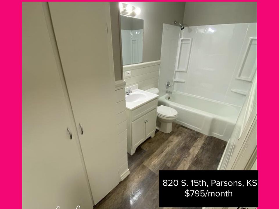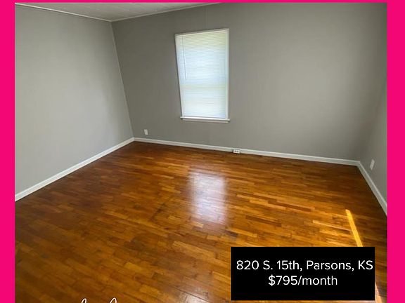 FOR RENT 820 S. 15th, Parsons, KS This charming 1-bedroom, 1-bath home is move-in ready! Newly remodeled, spotless, and filled with updates!! This property is move in ready! Features: Central Heat & Air All-Electric Utilities Modern Updates 685 sq.ft $795/Month | $795 Deposit Tenant pays all uilities. Tenant takes care of all lawncare. Pest control and snow removal would be Tenant responsibility, as needed or if needed. No smoking inside the property. Pets are not allowed at this property. Tenants are encouraged to carry liability insurance.