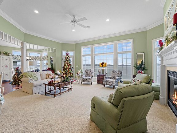 Situated on 92 feet of pristine lake frontage, this spectacular property is a jewel of Clear Lake. From luxury amenities to everyday living features, this custom built home by Lynn Delagrange is designed for you to get the most out of lake life. From the moment you walk in you are immediately greeted by breathtaking, panoramic views of Clear Lake. The main floor offers ample space and flexibility to host all of your family and friends for lake weekends, holidays or any special occasion. Main floor highlights include a relaxing sunroom, open kitchen with a large island and cabinets by Matt Schmucker, Majestic Fireplace, main floor master suite, spacious laundry room, additional half bath, transom windows throughout to allow maximum light. On the 2nd floor you will find two generously sized bedrooms, a full bath and a large attic area for extra storage. The walkout basement is a dream come true for entertaining guests or working remote. It offers a full wet bar, beautiful stone fireplace, an office with a lake view, complete with custom shelving, cabinets and desk by Black Swamp Cabinets. The basement has a bedroom and a separate bonus room that can be used as a den, home gym or additional sleeping space. There is also a large utility and storage room that can be accessed from the lake side for easy storage of your lake toys. In the utility area you will notice a new state of the art boiler system for the heated driveway and basement floor. In addition to the nearly 5000 finished sqft main house, you will find a back lot that boasts a large 2 car garage with an adorable 2 bedroom guest quarters that includes a full kitchen and living area. Clear Lake no longer allows living quarters to be built on back lots, so this is a rare opportunity to have the extra living space. The outside of the property is picture perfect with carefully planned landscaping, 2 levels of stamped concrete patios, concrete seawall and views that are truly priceless. The house also includes a backup generator and irrigation system. Clear Lake is an 800 acre all sports lake, and one of the cleanest and clearest you will find in Northern IN. Whether you like sporting, fishing or floating the day away you will find your happy place. A house like this does not come available often, especially on a double lot on Clear Lake. Schedule your tour today to see this one for yourself. Get ready to start making incredible memories this summer!