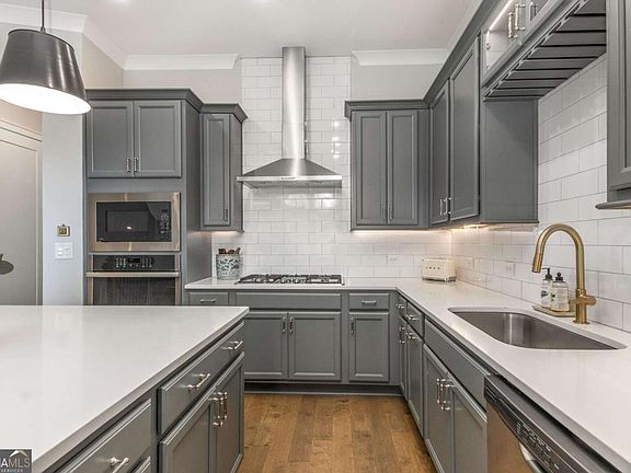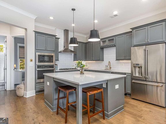 Discover this pristine retreat in desirable Hargrove, City of Decatur, blending classic sophistication with modern ease. This exceptional townhome showcases high-end upgrades, refined finishes, and an ideal location backing onto the community's green space. A beautifully landscaped and fenced front yard welcomes you to the covered entry, leading directly to the terrace level guest suite, complete with private bath, ample closet space, and access to the two-car garage. Upstairs, the main level unfolds in dramatic fashion with soaring two-story windows flooding the home with natural light. The gourmet kitchen is a chef's dream, boasting quartz countertops, an oversized island with storage, stainless steel appliances, a gas range, cabinetry in a rich luxury gray, upgraded hardware, and statement lighting. The open dining area easily accommodates a large table, enhanced by another elegant fixture. The living room exudes sophistication with custom built-in cabinetry and designer hardware, creating the perfect setting for both entertaining and everyday living. Also on the main level, a versatile bedroom with nearby bath offers the ideal space for guests, a private office, or den. A discreetly placed laundry closet and a well-sized pantry add thoughtful functionality. The third-floor primary suite is a private retreat, highlighted by a spa-inspired bath featuring a frameless glass shower, freestanding soaking tub, quartz dual vanity with custom lighting, and a walk-in closet of impressive scale. Every detail is elevated with custom cordless Roman shades throughout with designer trim in the entryway, living room, and primary suite. Beyond the home, the location is unbeatable-minutes to Oakhurst Village, Downtown Decatur, Avondale Estates, and Kirkwood. Surrounded by vibrant restaurants, local festivals, and beloved parks, and paired with City of Decatur's award-winning K-12 schools, this home offers not just refined living but a true lifestyle. Move-in ready and maintenance-free for years to come, this residence is the definition of turn-key perfection.