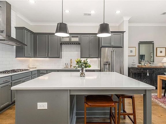 Discover this pristine retreat in desirable Hargrove, City of Decatur, blending classic sophistication with modern ease. This exceptional townhome showcases high-end upgrades, refined finishes, and an ideal location backing onto the community’s green space. A beautifully landscaped and fenced front yard welcomes you to the covered entry, leading directly to the terrace level guest suite, complete with private bath, ample closet space, and access to the two-car garage. Upstairs, the main level unfolds in dramatic fashion with soaring two-story windows flooding the home with natural light. The gourmet kitchen is a chef’s dream, boasting quartz countertops, an oversized island with storage, stainless steel appliances, a gas range, cabinetry in a rich luxury gray, upgraded hardware, and statement lighting. The open dining area easily accommodates a large table, enhanced by another elegant fixture. The living room exudes sophistication with custom built-in cabinetry and designer hardware, creating the perfect setting for both entertaining and everyday living. Also on the main level, a versatile bedroom with nearby bath offers the ideal space for guests, a private office, or den. A discreetly placed laundry closet and a well-sized pantry add thoughtful functionality. The third-floor primary suite is a private retreat, highlighted by a spa-inspired bath featuring a frameless glass shower, freestanding soaking tub, quartz dual vanity with custom lighting, and a walk-in closet of impressive scale. Every detail is elevated with custom cordless Roman shades throughout with designer trim in the entryway, living room, and primary suite. Beyond the home, the location is unbeatable—minutes to Oakhurst Village, Downtown Decatur, Avondale Estates, and Kirkwood. Surrounded by vibrant restaurants, local festivals, and beloved parks, and paired with City of Decatur’s award-winning K–12 schools, this home offers not just refined living but a true lifestyle. Move-in ready and maintenance-free for years to come, this residence is the definition of turn-key perfection.