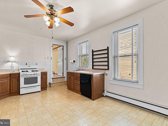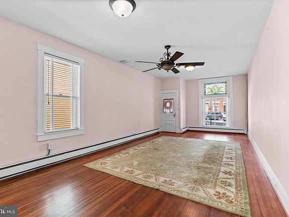 Discover the charm of this end-of-row classic Baltimore townhouse in vibrant Brewers Hill, offering 3,139 total square feet of living space with 4 bedrooms, 2 full baths, and 1 half bath, all brimming with character. Enter the main level to find a bright living room featuring wood floors, a ceiling fan, and beautiful stained glass windows. Continue into the open-concept kitchen and dining area, which includes ample cabinetry, a white tile backsplash, a gas range, and a built-in china cabinet. A standout feature of this home is the expansive and cozy library or bedroom, complete with an entire wall of built-in bookshelves and a convenient full bathroom. The upper level features 1 full bathroom and 3 spacious bedrooms, including the primary bedroom with oversized windows and hardwood floors. Two of the bedrooms also boast charming bow windows. The lower level serves as a blank canvas for your personalization, featuring a versatile recreation room, laundry facilities, a shower, an expansive workshop, and a convenient half bathroom. A spacious rooftop deck offers stunning views of the Baltimore skyline, perfect for entertaining guests, relaxing, or enjoying a sunset dinner. Brewers Hill combines historic charm with modern convenience, offering access to parks, diverse dining options, and shopping, while its proximity to the vibrant Canton area provides even more amenities, entertainment, and a lively atmosphere.