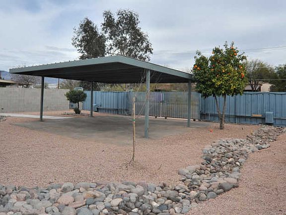 Remodeled home with a huge great room open to the kitchen consisting of vaulted wood planked ceiling and two modern ceiling fans. French Doors and wood laminate flooring, Newly painted cabinetry with stainless hardware. Granite countertops, undermount double stainless steel kitchen sink and spray faucet, stainless steel range, dishwasher. New fixtures. Remodeled bathrooms with granite countertops. Fully enclosed private yard with an electronic sliding gate, block wall, large carport, fruit trees. One wall is attached to an identical home. Incredible location within a mile to the UofA and Downtown. Just a few blocks east of Armory park subdivision and up the street from the Ice House Lofts. 4 New homes have just sold on the same st- Back Unit