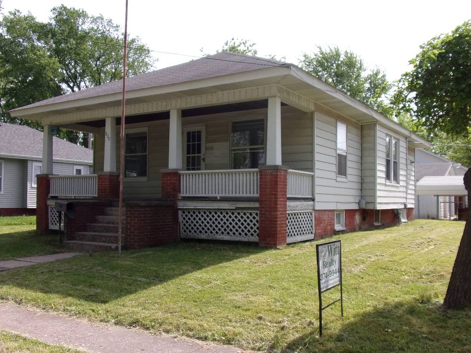 This property is located on a main road in Roodhouse on a corner lot. It is improved with a living room, dining room, 2 bedrooms, bath, and kitchen. There is a full unfinished basement with washer and dryer hookups. On this property there is a small shed, play house, 2 car garage with concrete drive, and a 2 car metal carport with concrete. A concrete patio and an exterior metal door to basement plus an interior way to basement. Large covered front porch. Large lot.