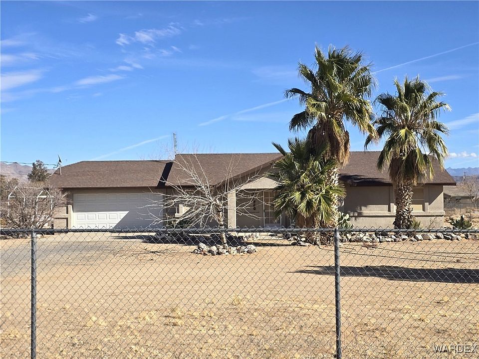 Nice 3BR, 2BA, 1,200 sq. ft. home with 2 car finished garage located on a chain-link fenced 1-acre lot in the Rancho Verde Estates subdivision. Interior features vaulted ceilings, pot shelves in the living room to display all your collectibles, galley kitchen, casual dining, carpet and tile throughout. Exterior features solar screens on all windows and mature landscaping. Easy access paved all the way to the property. Come and explore our beautiful Arizona desert, sunrises, sunsets and starry night skies. Country living at its best yet close to town for all your needs and yes of course horses are ok. Don't wait call a Realtor and schedule your showing of this nice property today.