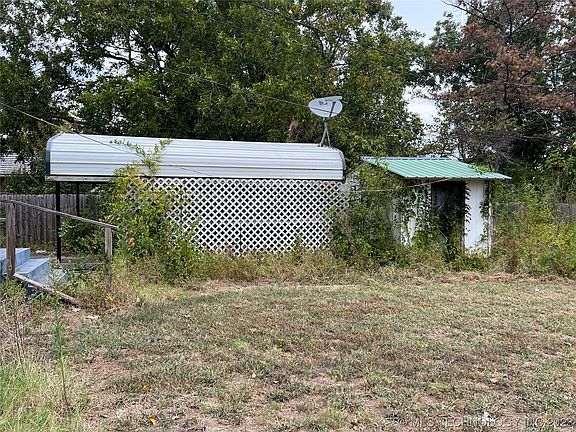 Great investment property! 2 bedroom 1 bathroom w/ carport & small shop that has electric. Dry inground storm shelter! Screened in front porch, solid kitchen cabinets and tall ceilings! Carport and Small shop w/electric! Located in town on 4 city lots. Selling AS IS WHERE IS- no seller repairs.