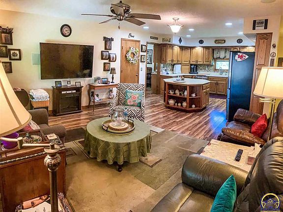 Beautiful ranch style home in Shawnee Heights! Much loved one owner features open concept floor plan, large master suite with fireplace and room for a large family! HVAC only 3 years old, Roof & gutters 2013! Whole house speaker system, Pella windows 2006 ,custom wood cabinets, RO system, Generac whole house generator, EMP protection, stainless appliances, water softener, vinyl siding. Enjoy your home with a country feel on 3 acres with apple trees and room to roam. Convenient to I 70 & Lake Shawnee.