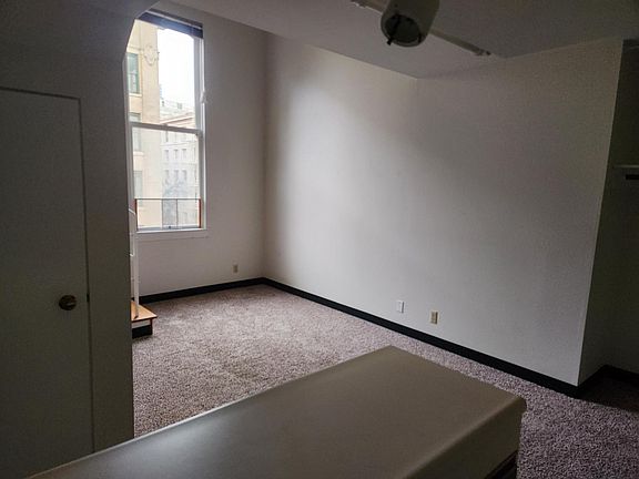 This one-bedroom loft style apartment is also suitable as a home office. 22-foot ceiling; loft bedroom, bathroom with skylight; fully equipped kitchen, forced air heat and air-conditioning; storage unit in basement; common space roof deck with Mt Hood and Willamette River view. This apartment is located next to the MAX. Other transportation options are within walking distance. Restaurants, bars and entertainment venues are within walking distance or close by. Landlord pays water, sewer and garbage. There is a coin-op washer/dryer on the same floor as the apartment. A small dog or cat is welcome. A one-year lease is required. The Thomas Mann Building is a smoke free building.